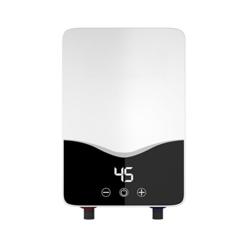 Quxxuolのタンクレス電気温水器は、LED温度表示付きで温度調整可能。壁掛けが容易な小型設計で、家庭用バスルームに最適です。シャワーセットも含まれています。