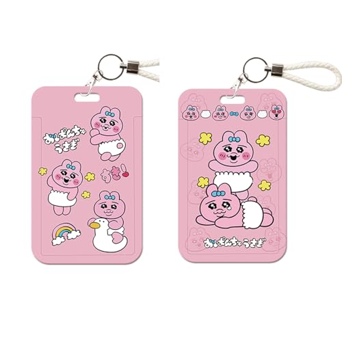 おぱんちゅうさぎデザインのカードケース。ICカードやトレカを収納可能で、キーチェーン付きで便利。学生証や名札入れにも最適。干渉防止機能あり、通勤・通学にぴったり。