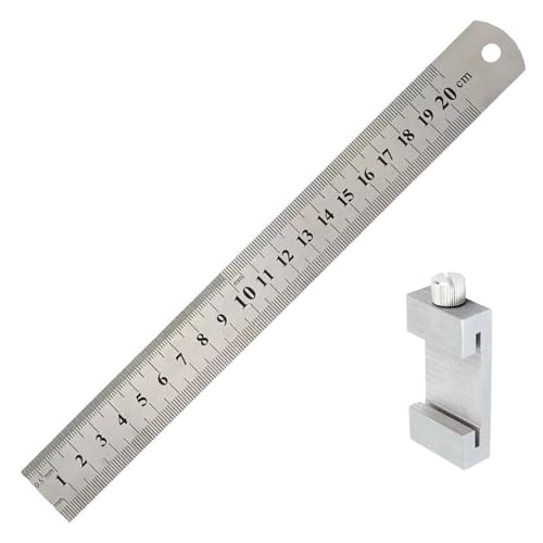 金属製のストッパー付き多機能定規。製図や木工、測量に最適で、テンプレートやケガキ、ゲージとしても使用可能。シルバーのデザインで耐久性もあり、事務用品や文房具としても活躍します。