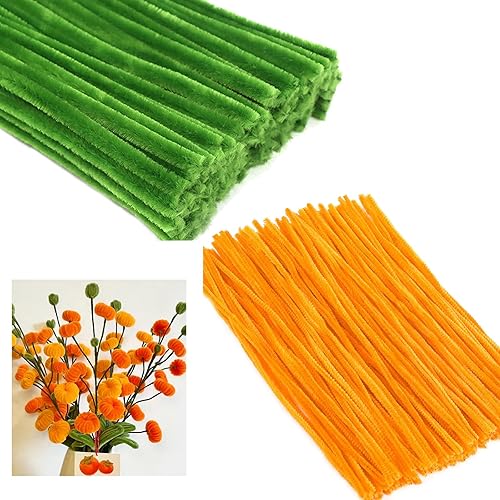 手芸モール200本セット。カラフルでDIYに最適。ワイヤーアート、ぬいぐるみ、圣誕飾りなどに利用可。100本のイエローゴールドと100本の軍グリーンの組み合わせ。子供向け知育玩具としてもおすすめ。