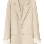 Aiiro Hatobaのテーラージャケットは、コントラスト袖口デザインのレディーススーツジャケットです。オフィスやカジュアル、フォーマルシーンに最適で、防シワ・洗える素材。卒園式や結婚式にも対応。春秋向けのベージュ、サイズ2L。