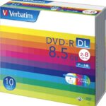 バーベイタム製のDVD-R DL 8.5GB、ホワイトプリンタブルで10枚入り。片面2層、書き込み速度は2-8倍速。高品質なデータ保存が可能。