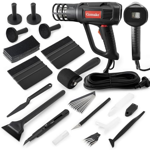 Gomakeのビニールラップツールウィンドウ着色キットは、カーラッピングやデカール取り付けに最適。ヒートガン、スポンジローラー、マグネットホルダー、ビニールタックツール、ティントスクイージー、フィルムカッターが含まれています。