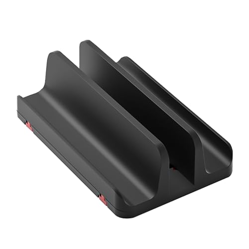 工具不要で幅調節可能な縦置きノートパソコンスタンド。コンパクトで省スペース、卓上やデスクトップに最適。PC冷却機能付きで安定性も高い。一部スマートフォンやタブレットにも対応(ブラック)。