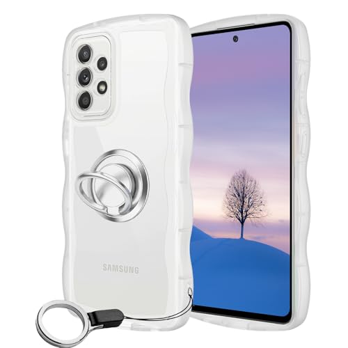 Galaxy A53 5G用のクリアケース。TPU製の波状デザインで、かわいくておしゃれ。薄型で耐衝撃、ストラップホール付き。韓国風の可愛いデザインが特徴です。