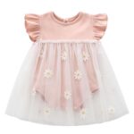Maeauの1歳女の子用バースデードレス。可愛い赤ちゃんロンパース、チュール付きフリルデザイン。フォーマルな場面にも最適。新生児や出産祝い、結婚式、お食い初めにピッタリなピンクカラーのドレスです。