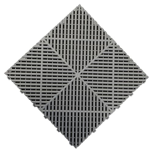 ガレージタイル NP-017 (グレー)は、40cm×40cm×1.8cmの正方形で、通気性と軽量性が特徴。バイクや車、自転車の駐車場、屋内外で使え、ガーデニングやイベントにも最適なフロアタイルです。