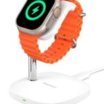 Apple Watch充電スタンドSwanScout 505Aは、角度調整可能で軽量、急速充電対応。11/10/9/8/7/6/5/4/3/2及びUltra/SEモデルに対応。ホワイト。