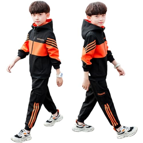男の子用ジャージ上下セット。長袖スウェットパーカーとロングパンツの2点セット。軽量で防風、春秋に最適な運動着。サイズは120-170cm、通学やカジュアルに最適なキッズトレーニングウェア。