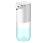 自動泡タイプのソープディスペンサー。吐出量は4段階調整可能。IPX5防水で静音設計。充電式で400mlの半透明ボトル使用。キッチンや洗面所に適用。