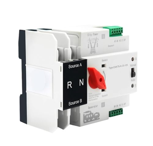 DINレール式のミニATSデュアルパワー自動転送スイッチ。2P/3P/4P対応、AC 110Vと230Vで動作。最大125A、無停電電源装置として使用可。