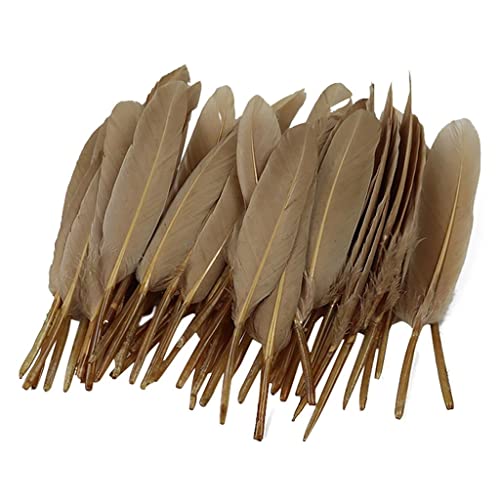 50本のブラウン染めガチョウの羽は、手芸や工芸品に最適な装飾用羽です。DIYアクセサリーや画材としても活用でき、美しい仕上げが魅力です。