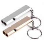 LTGのキーホルダー2個セット。防犯・防災用ホイッスルで、大音量で危険を知らせます。女性や子どもにも最適。卒園・入学、キャンプや登山などのアウトドアに便利。ゴールド×シルバーのスタイリッシュなデザイン。