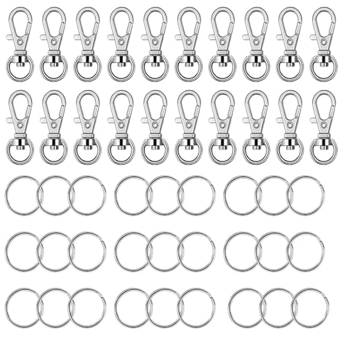 LUYINGキーホルダー金具は、二重リングと回転フックで構成されたDIYアクセサリーです。25点セットで、ハンドメイドの素材として最適で、様々なアクセサリー作りに便利です。