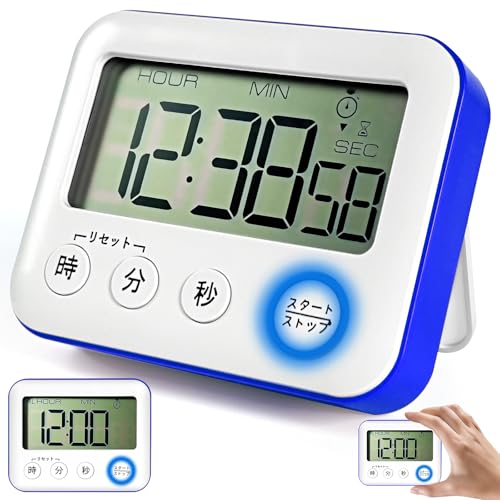 3in1多機能デジタルタイマーは、大画面で12/24時間表示、アラーム&カウントダウン機能を搭載。磁石&スタンド設置可能で、無音光/音アラーム切替式。単四電池式、ブルーのデザイン。