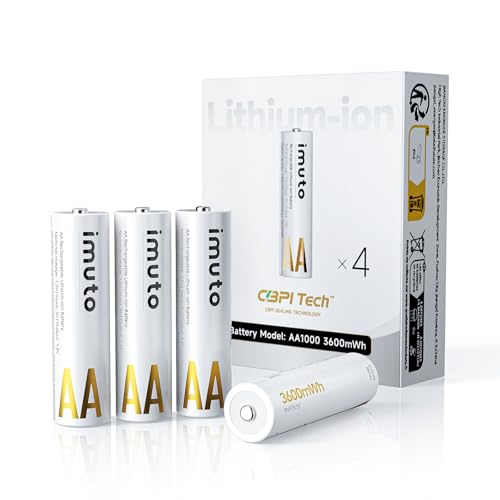 imuto 充電池 リチウム充電式電池 単3形 3600mWh 4本入り くり返し回数1600回 PSE認証
