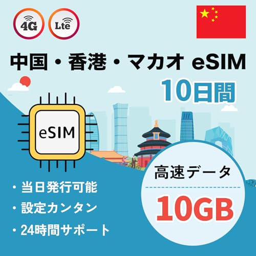【中国本土eSIM】香港とマカオでも利用可能 10日間 10GB 定番プラン データ通信専用(電話番号なし) 5G/4G-LTE対応 中国でもGoogle、LINE、YouTubeをVPNなしで利用可能 説明書付き LINEで24時間サポート 香港 マカオ 中国SIM MEWMEWホーム (10日間 10GB) 高価買取中