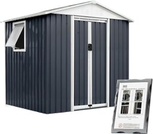 BTYJLEBE プレハブ小屋 【SGS防積雪認証】物置屋外 大型 スチール 【変形抵抗性がある】 倉庫 床材補強フレーム付き 可動棚 すべり出し窓付き 収納庫 防さび ベランダ 防水 ドア ガーデニング 庭 ブルーグレー
