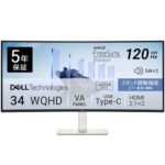 Dell S3425DW-Aは34インチの曲面UWQHDモニターで、解像度3440×1440、リフレッシュレートは100Hz。VESA DisplayHDR400対応、広視野角IPSパネルを搭載し、映画やゲームに最適です。