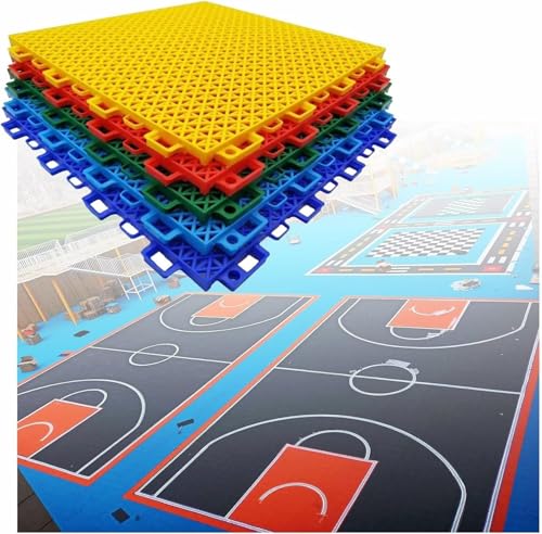 9.84インチのガーデン用モジュラーインターロッキングフロアマット。屋外バスケットボールや保育園のDIYスポーツコートに最適。急速排水機能付き、16個セット(グリーン)。