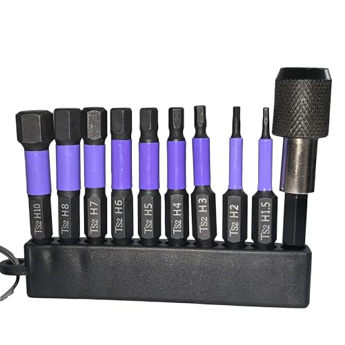 XIANFENGHUの電動ドライバービットセットは、6角ビット9本(H1.5mm-H10mm)、S2鋼製で磁気付き。50mmの長さで、6.35mmの六角軸が特徴。精密ドライバー及び電動工具に適した、ねじ締めドリル用のセットです。