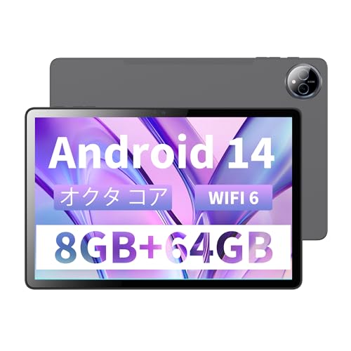 Veidoo 10.1インチタブレット、8GB RAM、64GB ROM(1TB拡張可)、8コアプロセッサ搭載、Android 14、WiFi 6、IPS HDタッチ、デュアルカメラ、Bluetooth 5.0、GPS対応。