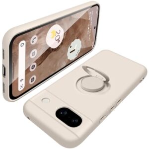 Google Pixel 8a ケース リング付 ピクセル8a スマホケース マット感 液体シリコン 耐衝撃 レンズ保護 ソフト スタンド機能付き リング カバー 360回転車載ホルダー (ホワイト)