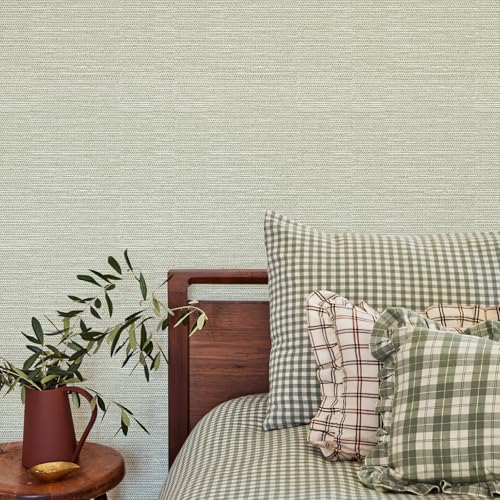 / 厚手 壁紙シール 剥がせる 無地 織物調 (44cm×6m) 北欧 おしゃれ 麦わら織りの質感 リメイクシート リビング キッチン トイレ 防水シール 賃貸(グレイグリーン)