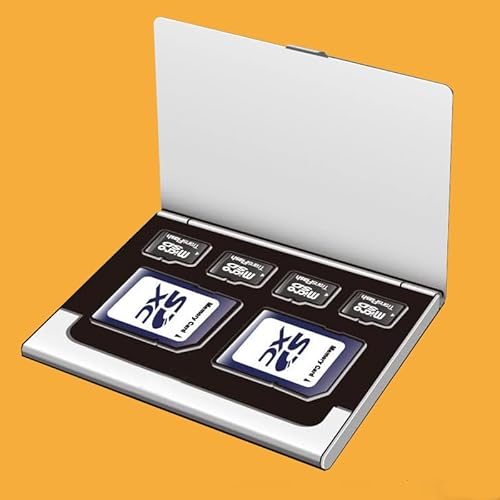 メモリーカードケースは、SDカード2枚とmicroSDカード4枚を収納可能。ステンレス製で耐久性があり、静電気防止クッション付きで安心して持ち運べます。