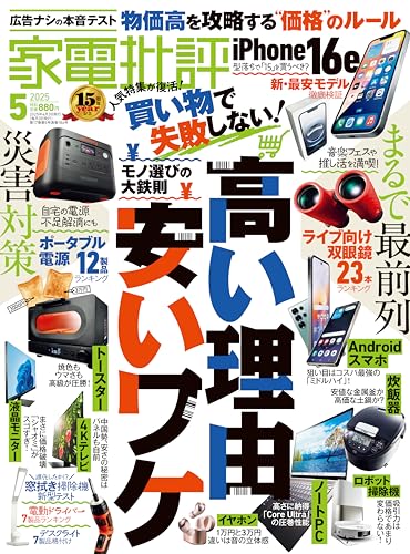 家電批評 2025年 05月号では、最新の家電製品のレビューや比較が特集されています。人気モデルの機能、使い勝手、コストパフォーマンスを詳細に分析し、読者に最適な選択を提案しています。