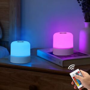 AmmToo ベッドサイドランプ 間接照明 2個 授乳ライト タッチ式 常夜灯 調光調色 おむつ替え LEDナイトライト リモコン付き 充電式 ルームランプ 寝室 キッチン 廊下 玄関 枕元用 タイマー設定なし 面白い 癒しグッズ 目に優しい 出産祝い 誕生日プレゼント ギフト インテリア 省エネ (多色)
