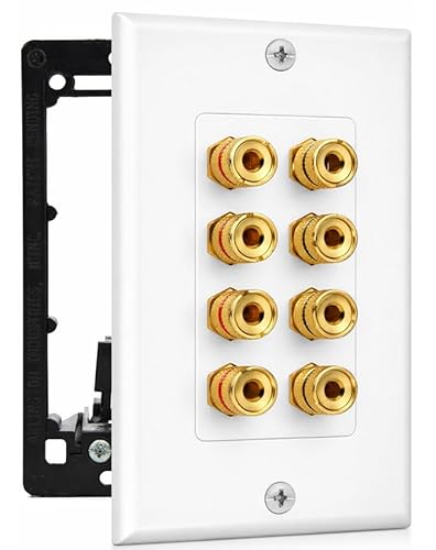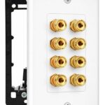 DIYTECH 4スピーカーウォールプレートは、金メッキバインディングポストを備え、ホームシアターやスピーカーのセッティングに最適です。高品質な音質を実現します。