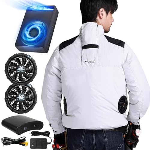 2025年モデルの冷風機服は、32V超強力冷風機・20000mAhバッテリー搭載。防水・防汚・速乾性があり、UPF50+で熱中症対策にも最適。日本製、無刷モーター使用。カラーはグレー、サイズはLLです。