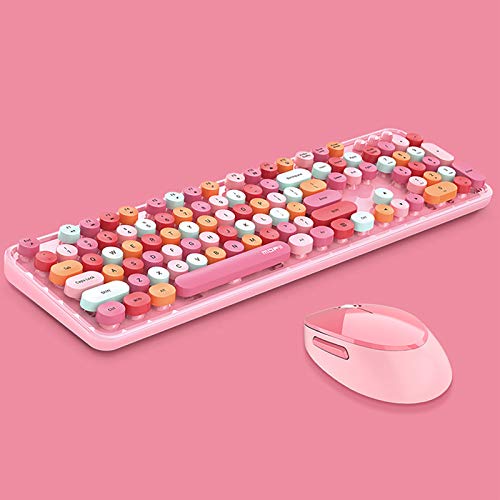 2.4G USBワイヤレスキーボードとマウス。マルチカラーの丸型キーキャップが特徴的な可愛いキャンディカラー。ノートPCやPCに対応。
