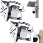 防犯カメラ用のステンレススチール製の取り付け金具。垂直・水平ポール対応で、穴あけ不要、調整可能。304スチールベルトとネジパッケージ付きで、簡単に取り付け可能。