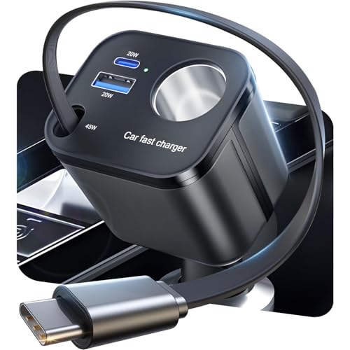 2025年モデルのシガーソケット増設器。145W急速充電対応、巻き取り式ケーブルで4台同時充電可能。10重の安全保護機能付き。角度調整可能で、出張や旅行に便利なカー用品。12-24V対応。