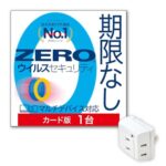 ソースネクストのZEROウイルスセキュリティ1台用と雷ガード付きトリプルタップのセット。パソコンをウイルスから守り、1つのコンセントを3口に分配可能。Windows対応。