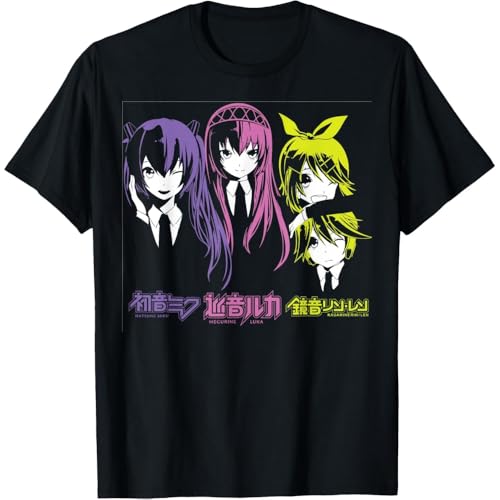 バーチャルアイドルテーマのTシャツ。紫、ピンク、黄色のカラフルデザインで、アニメ風のかわいらしさが魅力。コスプレやファン向けに最適な並行輸入品です。