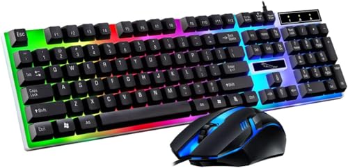 ゲーミングキーボードとマウスのコンボ: 軽量、プログラム可能、ゲーミングキーボード、テンキー、ゲーミングマウス、角度調整可能、有線、LEDバックライト、USB、耐久性、静音、ノートパソコンとデスクトップに対応 (タングステンゴールド トリコロールレインボーライトバージョン,キーボードとマウスのセット)