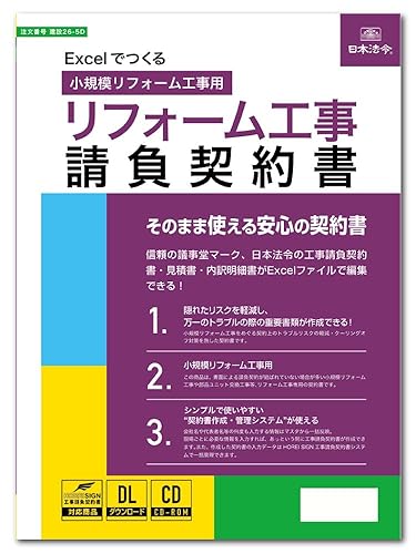 リフォーム工事請負契約書(建設26-5D)は、工事内容、請負金額、工期、支払い条件、保証条項などを規定した標準的な契約書です。Excelで簡単に作成可能で、法令遵守の形式を備えています。