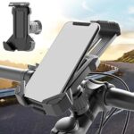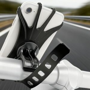 ユニバーサル自転車携帯電話ホルダー。オートバイ電話マウントで、ハンドルバーに取り付け可能。多様なスマートフォンに対応し、カラーはブラックです。