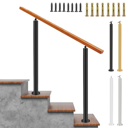 XCDHBEST 手すりは屋外階段や玄関用で、無垢材使用。高さ60cm、角度調整可能。介護や高齢者のサポートに最適で、コンクリートや木製階段に取り付け可能。DIYに便利なブラックのデザイン。