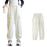[chickiddos] キッズ 長ズボン カーゴパンツ 女の子 男の子 ロングパンツ ジュニア カジュアル 無地 通気 柔軟 速乾 薄手 スポーツウェア ダンスズボン ひんやり 涼しい 接触冷感 春夏秋 無地 白 130 高価買取中
