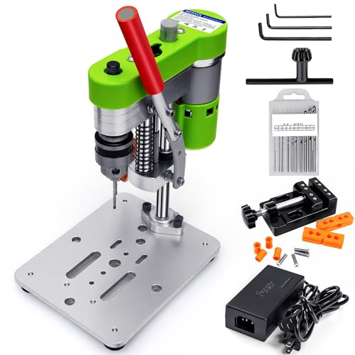 BERXOLミニドリルプレスは、795モーターとB10チャックを搭載。木材、金属、ジュエリーのDIYに最適なポータブル電動ドリル。クランプ付きで安定動作。
