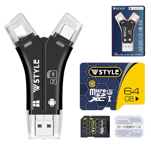 スマホ対応のSDカードリーダー。専用アプリ不要で簡単に使用可能。1TBまで対応し、iPhone16やUSBメモリに写真の保存・移動が可能。日本語取説付きで安心。W STYLEの正規品です。(DN063_gold)