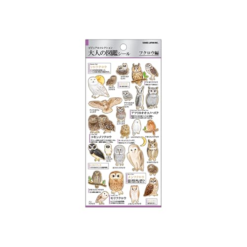 カミオジャパンの大人の図鑑シール、フクロウ226323は、リアルなイラストと高品質な素材が特徴です。さまざまなシーンで使える癒しのフクロウデザインで、手帳やノートのデコレーションに最適です。