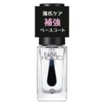 NAIL HOLICネイルホリックの補強ベースコート01は、5mLのクリアタイプで、ネイルの強度を高め、仕上がりを滑らかにします。爪を守り、美しいネイルを実現します。