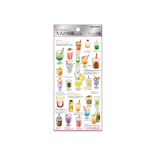 カミオジャパンの大人の図鑑シール「ジュース」は、リアルな飲み物デザインが特徴のシールセットです。226309番の製品で、さまざまなシーンで使用できます。楽しいアイテムで、コレクションにも最適です。