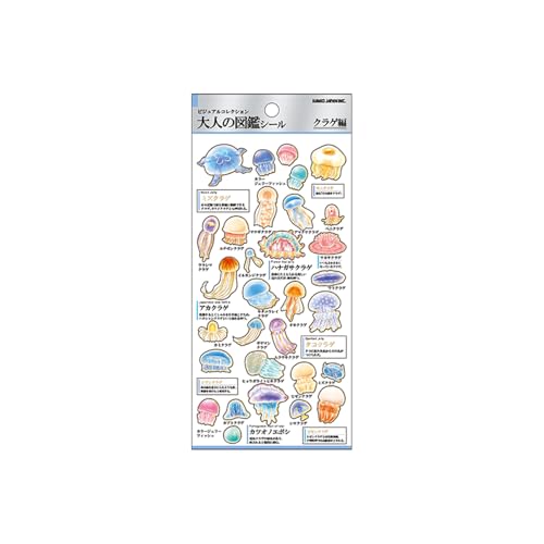 カミオジャパンの大人の図鑑シール、クラゲ226333は、美しいクラゲのデザインが特徴のシールセットです。様々な形や色のクラゲが丁寧に描かれており、ノートや手帳のデコレーションに最適です。