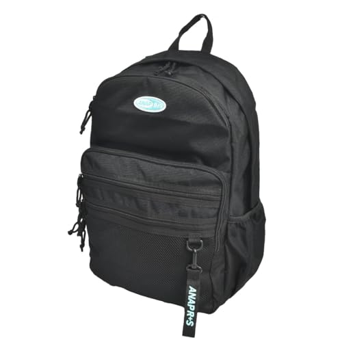 ANAP GiRLのリュックは、黒色でカジュアルなデザイン。25Lの容量で通学に最適。PCやタブレット、シューズの収納も可能。小学生から中学生まで幅広く対応。リラスポ仕様で快適な使い心地。